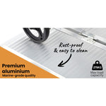 Suitable for private homes and commercial application the Equipmed ramp is finished in highest quality marine-grade alloy ensuring that it can accommodate up to 275kg. With a 73cm ramp width it comfortably accommodates wheelchairs and most mobility scooters.