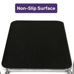 The step platform has a non-slip rubber pad, specifically designed to provide excellent traction even when in wet environments. This non-slip feature offers added peace of mind.