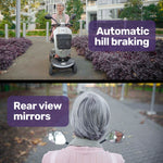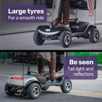 Equipmed regard safety and quality as paramount for their products. The Pathline Series Motorised Mobility Scooter is no exception, featuring electronic incline braking, integrated anti-tip wheels and front and rear LED lights, reflectors and flag for visibility. There’s a horn for alerting others, however it may be used more for simply showing off the new pride and joy!