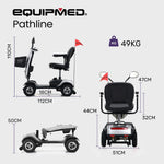 Assembly is straightforward with only the seat and armrests needing to be attached. The seat and battery pack are easily removed to make the scooter lighter and more compact in the event that it needs to be transported in a car boot. Occupants of up to 120kg can ride, which is a testament to the sturdy design. If you’re seeking a smart solution for your transportation needs, the Equipmed Pathline Series Electric Mobility Scooter will surely fit the bill.