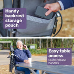 - Easy access and exit with flip-up armrests and fold-up footrests