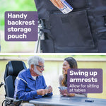 Getting on and off is a breeze with swing-up armrests and a swing-up footrest. The retractable armrests also allow comfortable dining at tables.
