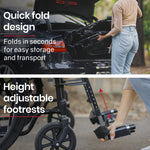 - Swing away footrest action for easy access