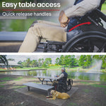 - Swing up armrests for dining at tables