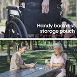 Activating the easy access park brake levers locks the wheels into position – a perfect time to pull out some reading material from the backrest pouch! This Equipmed Wheelchair certainly ticks all the boxes. Make the smart choice and enjoy well-deserved mobility!