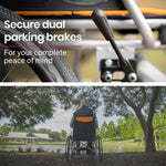 Equipmed Folding Aluminium Wheelchair, 20" Wheels, Park Brakes, 100kg Capacity, Orange