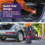 Introducing the Equipmed SmartRoller, a rollator and transit wheelchair rolled into one. It gives you the practicality, comfort and smooth mobility required. Independence is only a step away thanks to the stylish aluminium design with adjustable handle height. Despite only weighing 9kg, the frame is extremely strong. It can accommodate up to 136kg and is backed by a 3 year warranty. The handles themselves feature an ergonomic ‘winged’ design and easy-squeeze dual-action walker brakes.