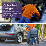 This high quality Equipmed rollator is easily foldable for practical storage and transport.