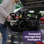 Designed with safety and convenience in mind, the flat-free tyres eliminate the worry of punctures, while Automatic Speed Control maintains a safe pace when descending. Anti-tip wheels and bright LED front and rear lights enhance stability and visibility.