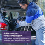 - Product Weight Unfolded: 29kg, Folded: 26kg (with batteries removed)
